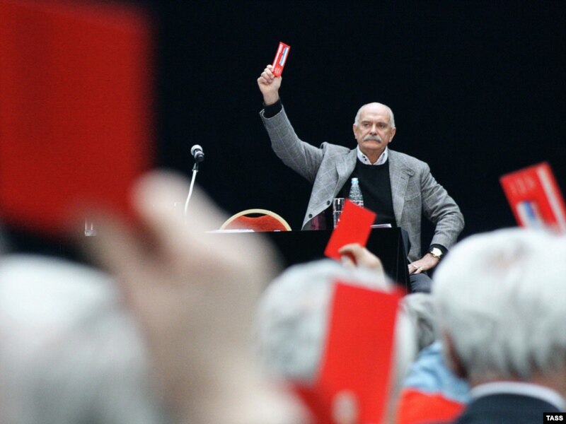 Режиссеры Владимир Хотиненко и Карен Шахназаров, с которыми разговаривала МаринаТимашева до начала съезда, считают, что председателем Союза кинематографистов должен остаться Никита Михалков.