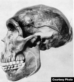 Реконструкция черепа палеоантропа из долины Неандерталь близ Дюссельдорфа (автор Г.Клаач)