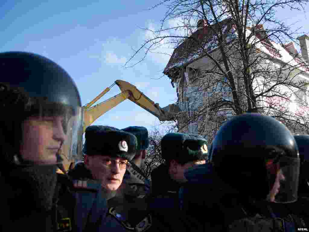 Около 20 человек с криками "Позор!" попытались прорвать милицейское оцепление...