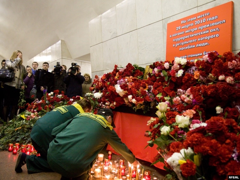 На станциях московской подземки, где 29 марта прогремели взрывы, унесшие 39 жизней, будут установлены мемориальные доски. Сегодня там – плакаты, напоминающие о страшной трагедии. И море цветов. И поминальные свечи. Из каждого состава, прибывающего на "Лубянку" и "Парк культуры", обязательно выходят несколько пассажиров с траурными букетами. Об общей скорби и объединяющей людей памяти – фоторепортаж корреспондента Радио Свобода.