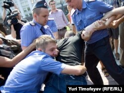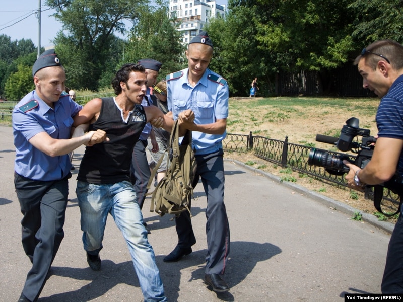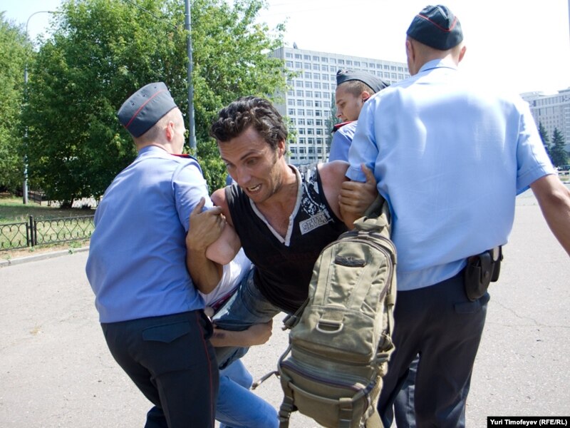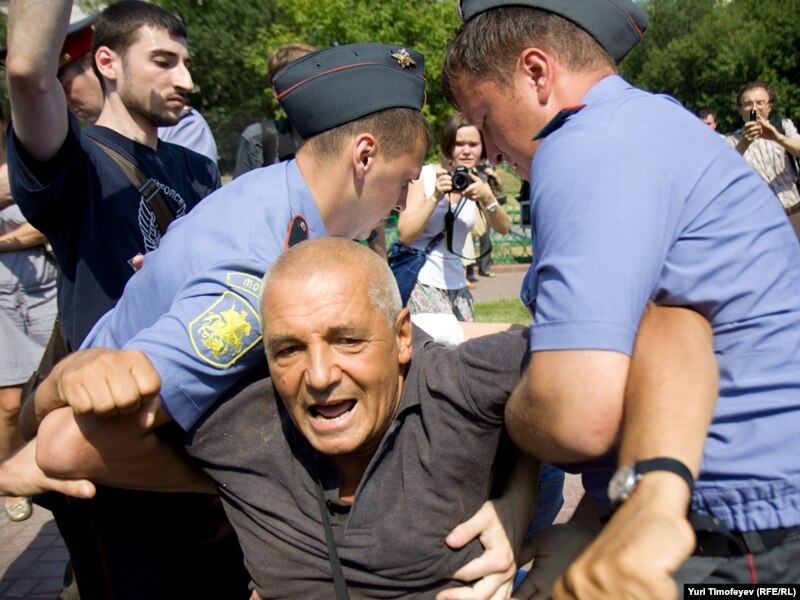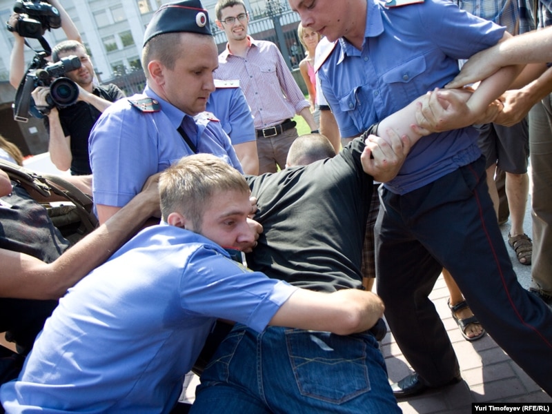 После начала сбора подписей под обращением к правительству РФ милиция объявила акцию незаконной и начала задержание участников