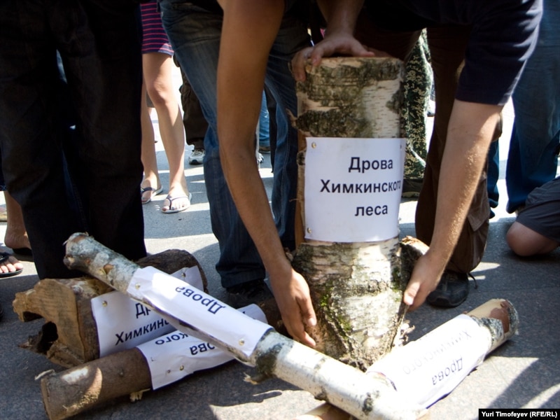 Правительству принесли дрова Химкинского леса. Фоторепортаж