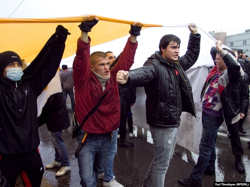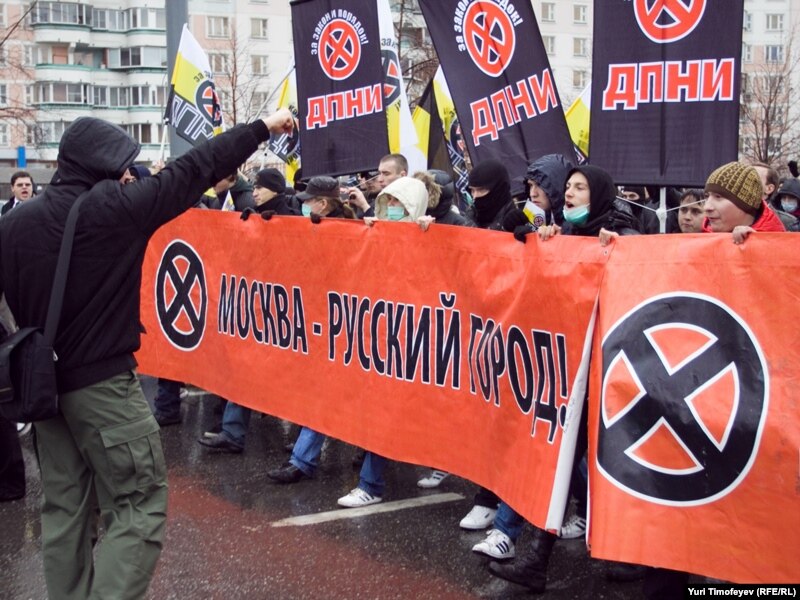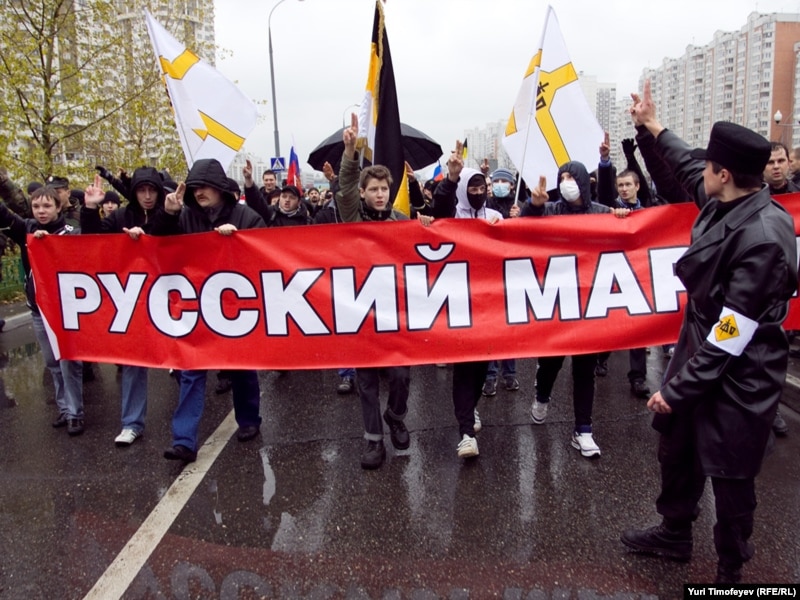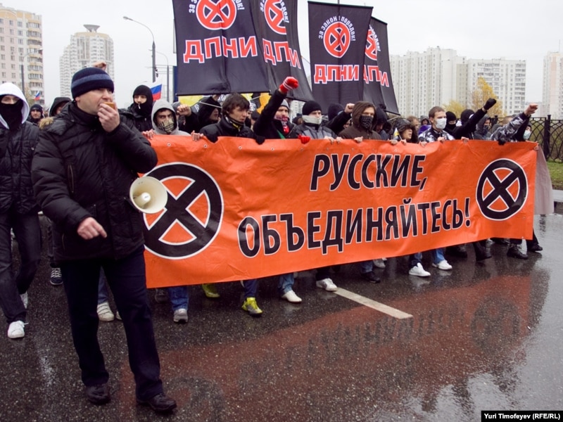 Акция националистов "Русский марш" состоялась в День народного единства в московском районе Люблино. Около 5 тысяч человек прошли по улице Перерва, скандируя националистические лозунги.