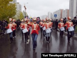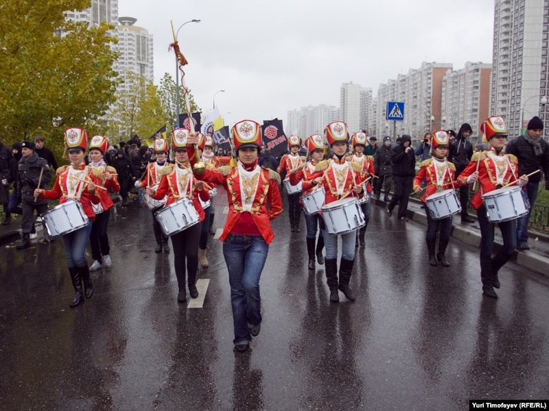 Колонну ДПНИ традиционно возглавляли барабанщицы
