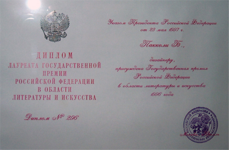 В то время Беджет Паколли стал в Москве модной светской фигурой - с ним встречались высокопоставленные кремлевские политики, его не обходили даже государственными отличиями. так, Паколли стал лауреатом Государственной премии по литературе и искусству - как дизайнер. Кремлевские дипломы и грамоты составляют предмет гордости нового президента Косова - на сайте Беджета Паколли нет недостатвка в благодарственных документах с подписями Бориса Ельцина и Павла Бородина.