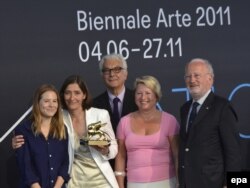 Юлия Кисина: Золотого льва в этом году получил немецкий павильон за инсталляцию умершего от рака в прошлом году театрального режиссера Кристофа Шлингензифа. Куратором, задумавшим выставить Шлингензифа, была Сюзанне Генцхаймер, директор музея современного искусства во Франкфурте-на-Майне. Многие пришли в восторг от ее выбора национального художника. Многим это категорически не понравилось.