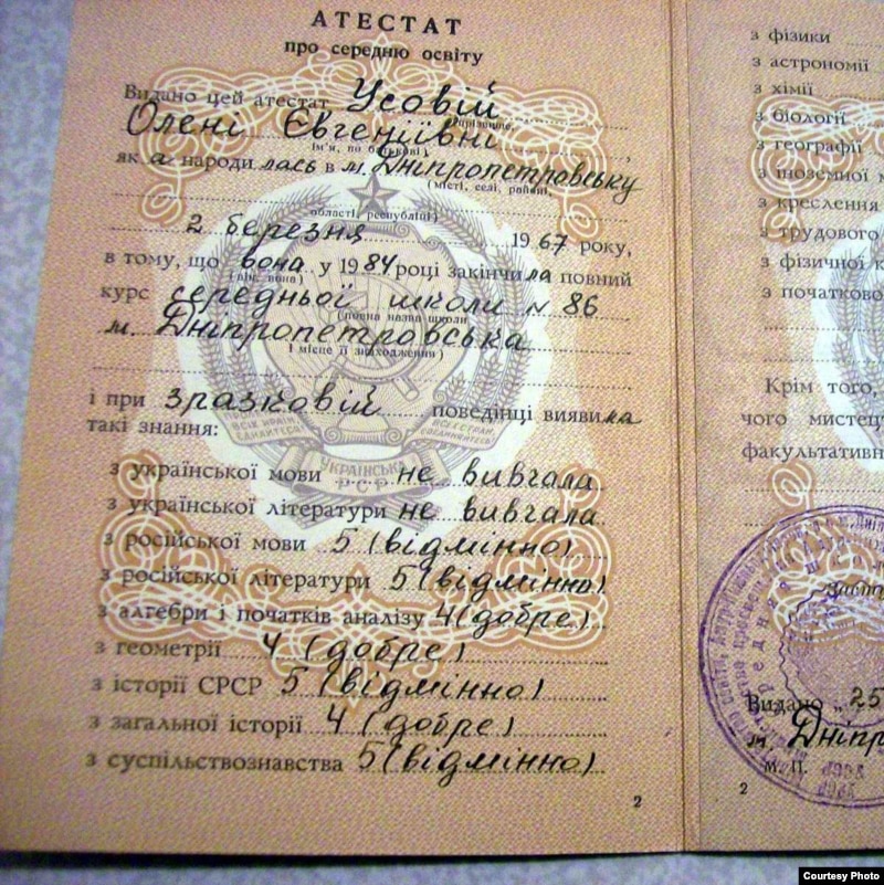 В аттестате зрелости напротив украинского языка и литературы у меня записано: не изучала.