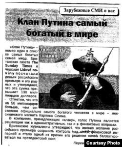 По данным британской газеты The Sunday Times и чешской Lidove noviny, Владимир Путин за время пребывания у власти создал империю стоимостью 130 млрд.долларов. Чешская газета отдает так называемому «клану Владимира Путина» первое место в рейтинге самых богатых семей мира.