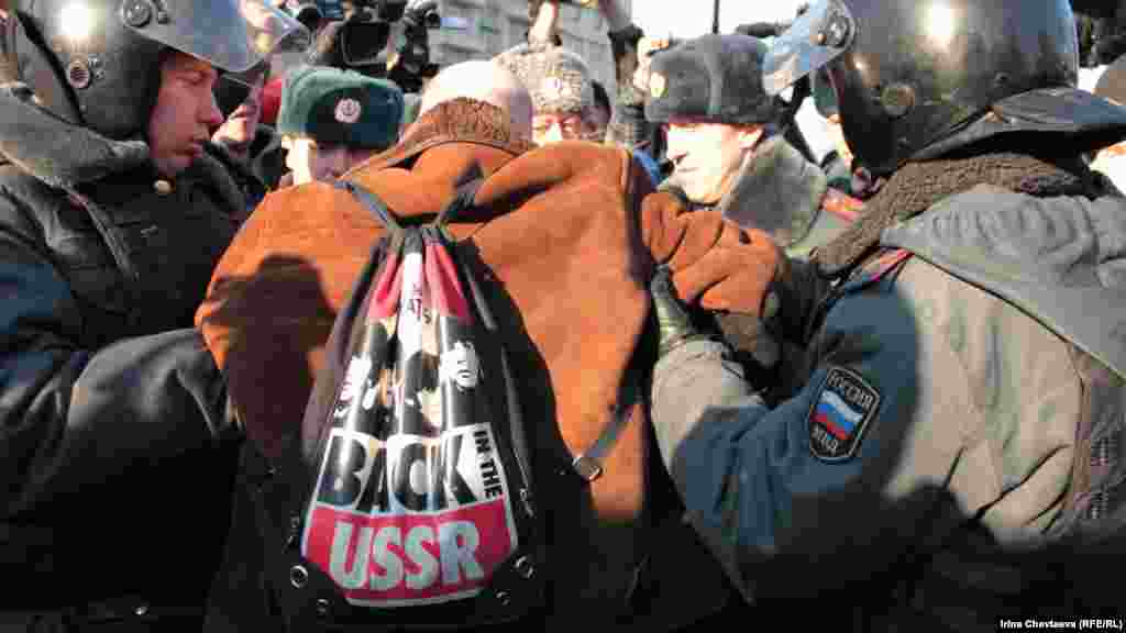 На Пушкинской площади был задержан один активист, который призвал всех идти к отделению полиции, где находился Сергей Удальцов