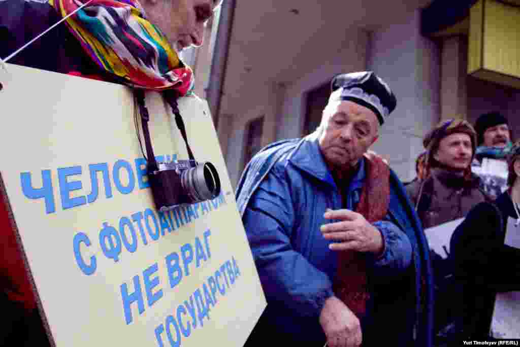 Московские журналисты и фотографы провели у посольства Узбекистана "плов-пикет" в защиту прав фотожурналистов.