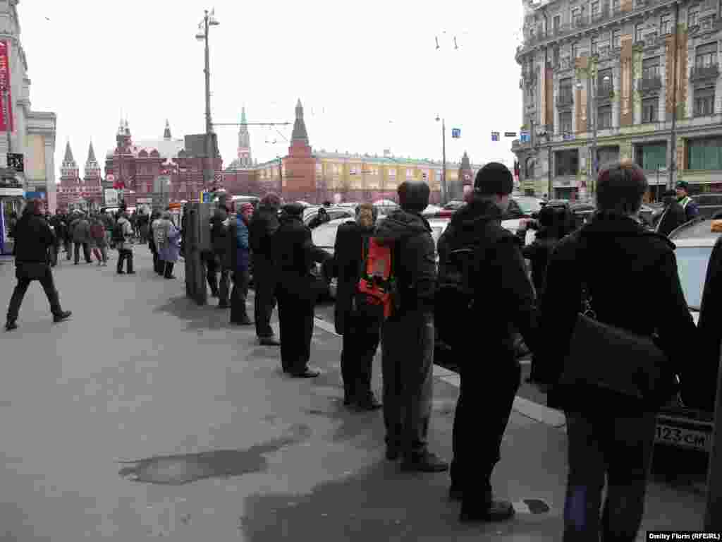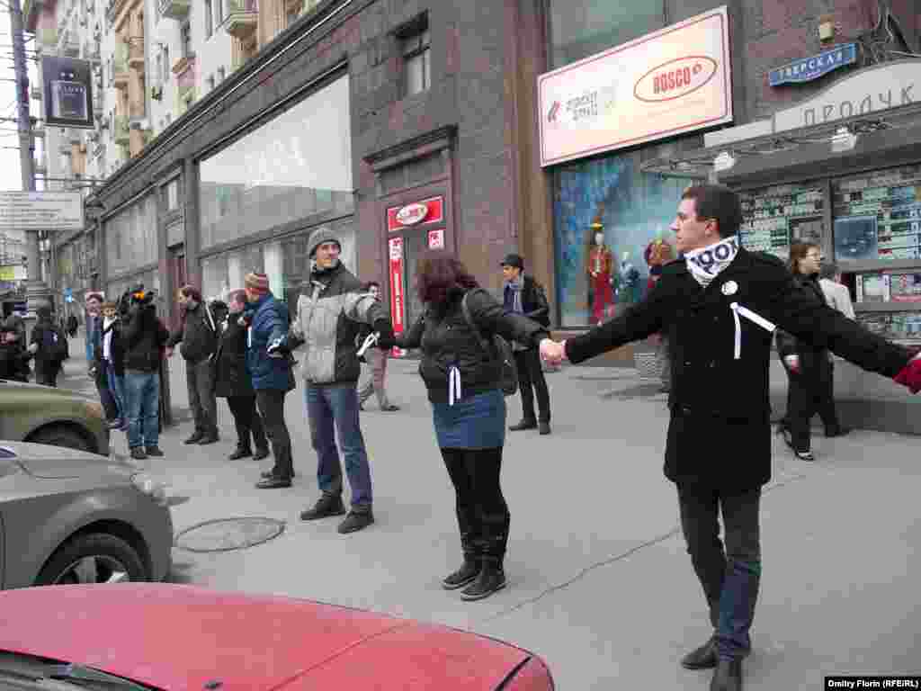 Неподалеку от Госдумы собрались несколько десятков активистов – для проведения акции «Белая дума». Протестующие хотели окружить здание Госдумы «белым кольцом» или просто прогуливаться возле него с белыми лентами - символом кампании "За честные выборы".