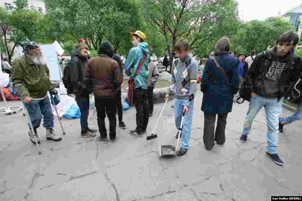 Днем 14 мая появилась информация о возможном разгоне лагеря "ОккупайАбай". Но пока его обитателей лишь попросили убрать вещи с газонов.