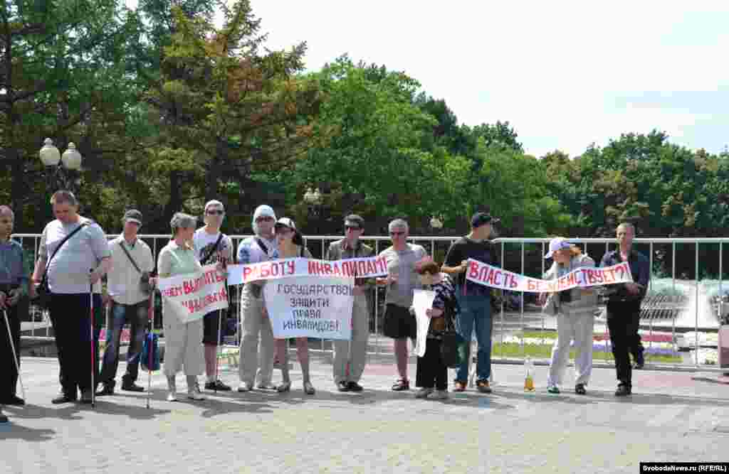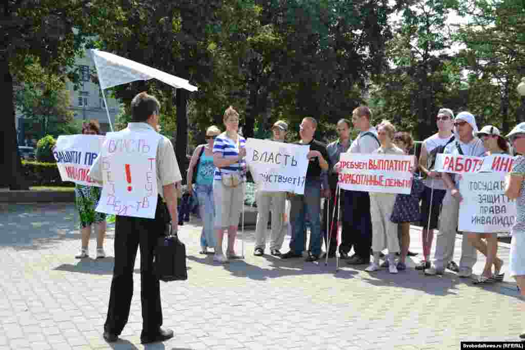 В Москве 5 июля прошел пикет сотрудников call-центра, инвалидов по зрению. Они требуют выплаты задолженности по зарплатам. Центр прекратил работу 2 года назад. До сих пор работодатель не выплатил сотрудникам-инвалидам , многие из которых так и не смогли найти новое место работы, деньги. Фото Маргариты Васильевой