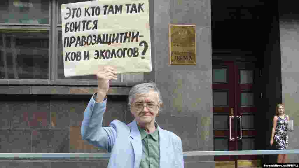 Одиночные пикеты активистов партии "Яблоко" у Госдумы