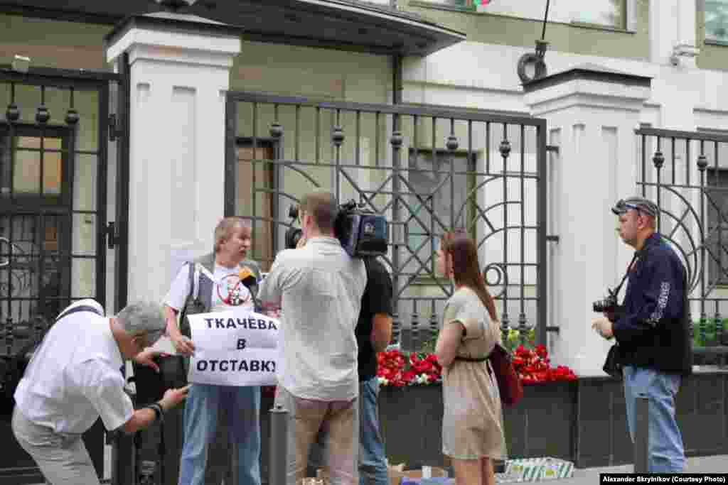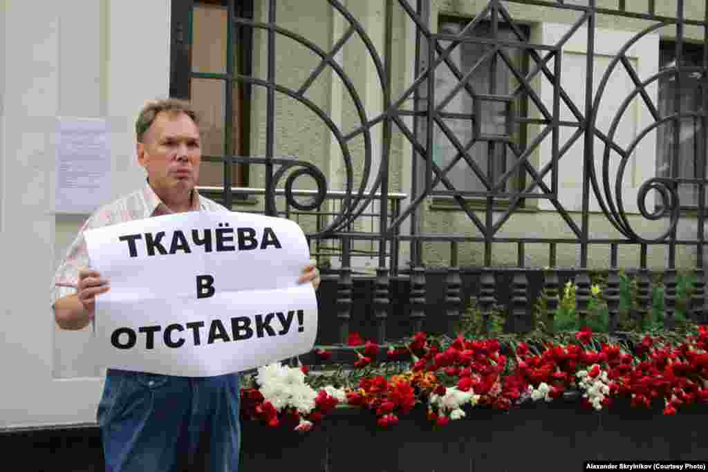 9 июля - день траура у Представительства Краснодарского края в Москве. Люди несут цветы и свечи. Некоторые встали в одиночных пикетах с плакатами "Ткачёва в отставку" и "Смерти людей на совести Ткачева".