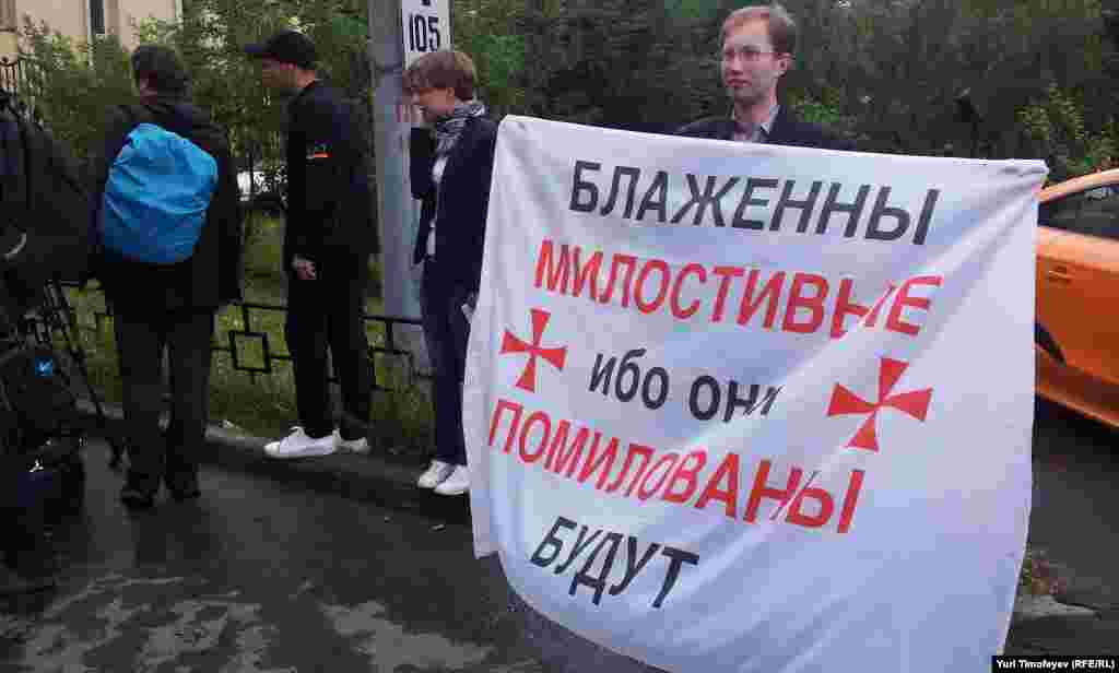 ПГМ у суда над Pussy riot. А сторонников немного, хотя дождь совсем не сравним с водометом