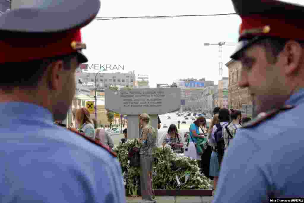 У памятной стеллы 19 августа прошла акция "День свободной России". Люди приносили к памятнику цветы, зажигали свечи. Один человек был задержан.
