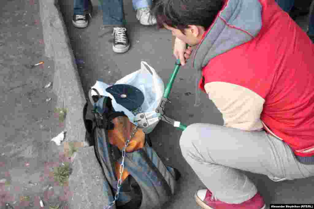 Парня, попытавшегося разрезать принесенную им цепь и раздать ее кусочки окружающим задержали первым