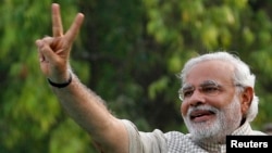 Президент США Барак Обама после окончания выборов в Индии провел с Моди телефонный разговор и пригласил посетить Вашингтон. Однако Моди, похоже, с визитом в Соединенные Штаты не спешит. После беспорядков в Гуджарате США порвали связи с Моди и отказали ему во въездной визе в 2005 году. Моди публично никакой обиды по этому поводу не выказывал, заявив недавно: "Проблемы с отдельными людьми не должны и не могут влиять на международные отношения". Однако многие обратили внимание, что Моди, который поблагодарил ряд мировых лидеров за их поддержку через социальную сеть Twitter, так и не ответил на твит-сообщение госсекретаря США Джона Керри.