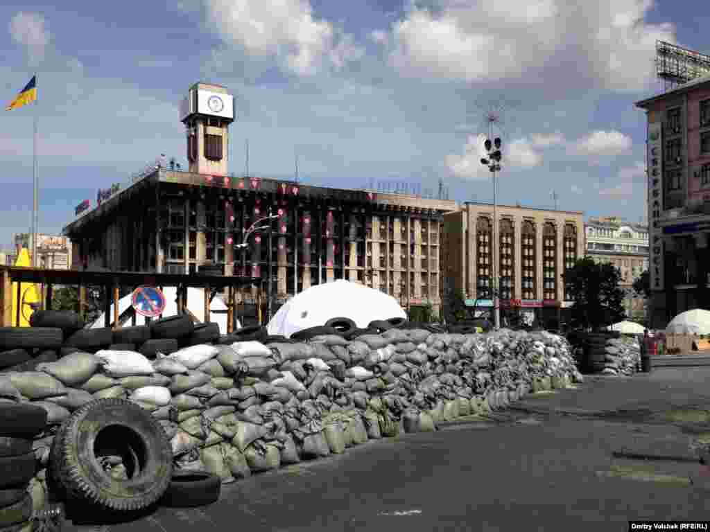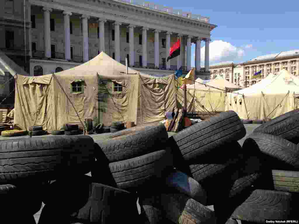 Виталий Кличко, избранный мэром Киева, и представители Майдана обсуждают будущее центра украинской столицы. Кличко предложил убрать баррикады, однако пока свернуты лишь две палатки на Крещатике. 28 мая было подписано заявление сообщества Майдана, в котором говорится, что "Майдан не расходится, пока не выполнены его требования: наказание преступников; люстрация; пакет законов для изменения системы власти; не установлен конституционный порядок в части общин; не наказаны виновные в массовых убийствах; не создана территориальная община Киева по самоуправлению". Эти фотографии я сделал в середине мая, до президентских выборов.