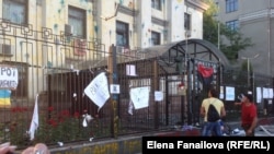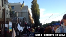 Пикет у российского посольства в Киеве в связи с проникновением российских танков на территорию Украины и сбитым в Луганске сепаратистами самолетом ИЛ-76 перерос в беспорядки. Пострадал фасад посольства и автомобили сотрудников.