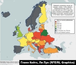 Некоторые из стран, полагающихся на поставки российского газа, являются в то же время ее жесточайшими критиками. Все три прибалтийских государства – Латвия, Литва и Эстония, – оказавшие в нынешнем кризисе прочную поддержку Украине, получают 100 процентов поставок своего природного газа из России. Украина получает из России 72 процента газа. Ни одна из этих стран не платит менее чем 416 долларов за тысячу кубометров газа.
