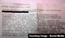 Климову обязали прийти 18 ноября к замначальнику отдела надзора в сфере массовых коммуникаций Андрею Баринову для составления протокола об административном правонарушении.