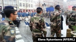 На параде выступил министр обороны Франции Жан Ив Ле Дриан. Перед этим он обошел все шеренги, выстроившиеся на площади Клебер. Он немножко похож на Виталия Коротича. Я, конечно, не понимала, что он говорит, но потом прочла. Он заявляет, что те жгучие бои, которые развернулись в Страсбурге 70 лет назад, приобретают особую актуальность сейчас, во время борьбы против вооруженных исламских движений. Говорит, что за семьдесят лет мир значительно изменился, однако "наш общий враг, под разными лицами, оставался тем же: нетерпимость, расизм, фанатизм, варварство" и этот враг "сеет тот же ужас среди населения Европы". Он также заявляет, что Франция разделяет всю полноту ответственности в этом бою своими военными операциями в Мали, в Центрально-Африканской Республике, в Индийском океане и в последнее время также в Ираке, принимая участие в воздушных ударах против радикальных исламистов. Это идут представители именно современной французской армии.