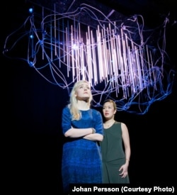 В пьесе Стоппарда “Аркадия”, премьера которой прошла в Национальном театре в 1993 году, тоже идет речь о науке, тоже ведутся споры и плетутся интриги. Есть там и девочка, которая рассуждает о ньютоновой механике и танцует со своим учителем при свечах. Героям “Аркадии” невозможно не сопереживать; героев “Сложной проблемы” невозможно воспринимать всерьез. Дело не в плохой игре – актерам не до передачи чувств, им нужно втиснуть в насыщенные 11 сцен множество информации, поговорить и о том, телеологичен ли космос, и о том, какие химические изменения претерпевает слюна игроков в покер, и о том, зачем муравьи ползут вверх по стеблям травы. При виде исполнителей вспоминается фраза из пьесы Стоппарда “Отражения, или Истинное” – там герой-драматург, сочувствуя актеру, играющему в постановке его вещи, говорит: “Я это один раз написал, а ему каждый вечер произносить приходится”. Научные дискуссии разворачиваются в сени гигантской декорации – нависшей над сценой модели мозга, сооруженной из проводов и фонариков, вспыхивающих разными цветами, как изображения на экране томографа.