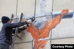 Уничтожение "распятого Гагарина". Фото Максима Кимерлинга