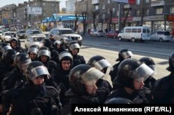 В десять утра больше тысячи "монстрантов" собрались на площади Калинина, но покинуть ее, чтобы пойти колонной с официальной демонстрацией, они не смогли. Площадь окружили ОМОН и полиция. Они перекрыли все выходы с площади, а по периметру поставили автобусы. Представители власти предложили "монстрантам" отвезти их на городскую набережную, где проведение акции и было согласовано. Однако "монстранты" ехать туда отказались.