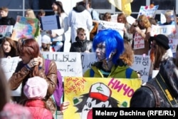 Монстрация со своими абсурдными лозунгами, например "Хватит оскорбляться", "А почем бананы в Оперном", "Куплю здравый смысл", "Империя зла, очень зла", "Марш согласных", "Запрещено запрещать, разрешать разрешено", "Такой вот театр", – первоначально хотела присоединиться к общегородскому первомайскому шествию. По словам идеолога Монстрации, художника Артема Лоскутова, у них была предварительная договоренность с партией "Яблоко", которая готова была пустить ее участников в свою колонну.