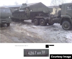 Последняя фотография, которая привлекла наше внимание в альбоме Дмитрия З., загружена 12 декабря 2013 года одним из его друзей. На ней солдат позирует на прицепе с танком. Слева – тягач со знакомым номером 4267АН50, тот самый, что вез "Бук" №3Х2 в июне по территории Украины: