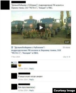 Одна из записей на стене этого пользователя содержит несколько фотографий, и даже видео транспортировки военной техники, включая "Буки". Видео снято 19 июля, два дня спустя после катастрофы "Боинга", загружено в сеть 31 июля, когда пользователь находился в Старом Осколе. Оно также размещено на Ютьюбе.