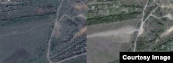 Впрочем, если бросить взгляд на спутниковые снимки местности, сделанные в апреле 2013 и в августе 2014 года, становится ясно, что "Бук" перевозили не по улице, а через поле, которое отделяет Верхнюю Ореховку от Северного – на втором снимке (справа) отчетливо видны следы тяжелой техники, которых нет на первом (слева). Скорее всего, здесь перебрасывалась и другая техника, кроме "Буков":