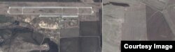 Слева: военный аэродром в Миллерово, предположительный пункт назначения июньской колонны. Справа: военный лагерь к югу от Каменск-Шахтинского, конечная точка июльской колонны: