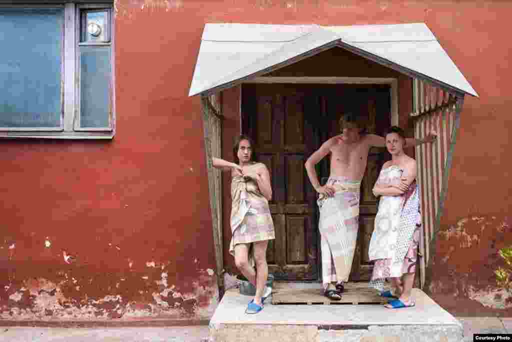 Фотосессия актеров Псковского академического театра драмы им. А.С.Пушкина Анны Шуваевой, Жени Львовой и Дениса Золотарёва в поддержку спектакля режиссера Варвары Фаэр "Банщик". Руководство театра фактически отказалось от постановки спектакля после жалобы части коллектива и администрации министру культуры России Владимиру Мединскому: пьеса якобы очерняет современную российскую действительность. Теперь режиссер и несколько занятых в спектакле актеров проводят кампанию по сбору средств на постановку "Банщика".