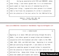 В среду же была обнародована – с изъятиями – запись судебного заседания в Нью-Йорке, проведенного в ноябре 2013 года, на котором Чак Блейзер, 17 лет входивший в состав исполнительного комитета ФИФА и 21 год возглавлявший Конфедерацию футбола Центральной и Северной Америки (C0NCACAF), признался в получении взяток.