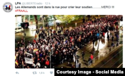 Марш поддержки в Германии. Во Франции широко циркулировал твит с фото демонстрации и подписью "Немцы вышли на улицы, чтобы выразить свою поддержку!"