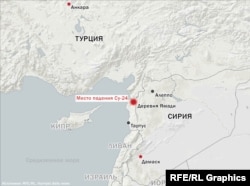 Ранее сообщалось, что сбитый во вторник Су-24 упал в районе, где живут сирийские туркмены. Эту местность в последние дни бомбила российская авиация. Туркмены заявляют, что подвергаются атакам как со стороны сил президента Башара Асада, так и боевиков запрещенной группировки "Исламское государство".