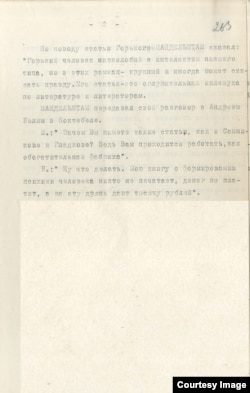 "Донос – документ, который был найден совершенно случайно, – рассказывает Нерлер, – историк Алексей Берилович изучал коллективизацию, и ему принесли его по ошибке. Так что скан экспонируется практически впервые. Оригинал письма представлен на другой московской выставке "Я скажу тебе с последней прямотой", проходящей в Государственном литературном музее" (одним из ее кураторов также является Павел Нерлер).