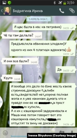 Натянутость обвинений была очевидна следователю Баряевой с самого начала. Уже 3 апреля, через неделю после задержания подозреваемых, она пишет своей подруге (орфография и пунктуация авторов сохранены на протяжении всей статьи):