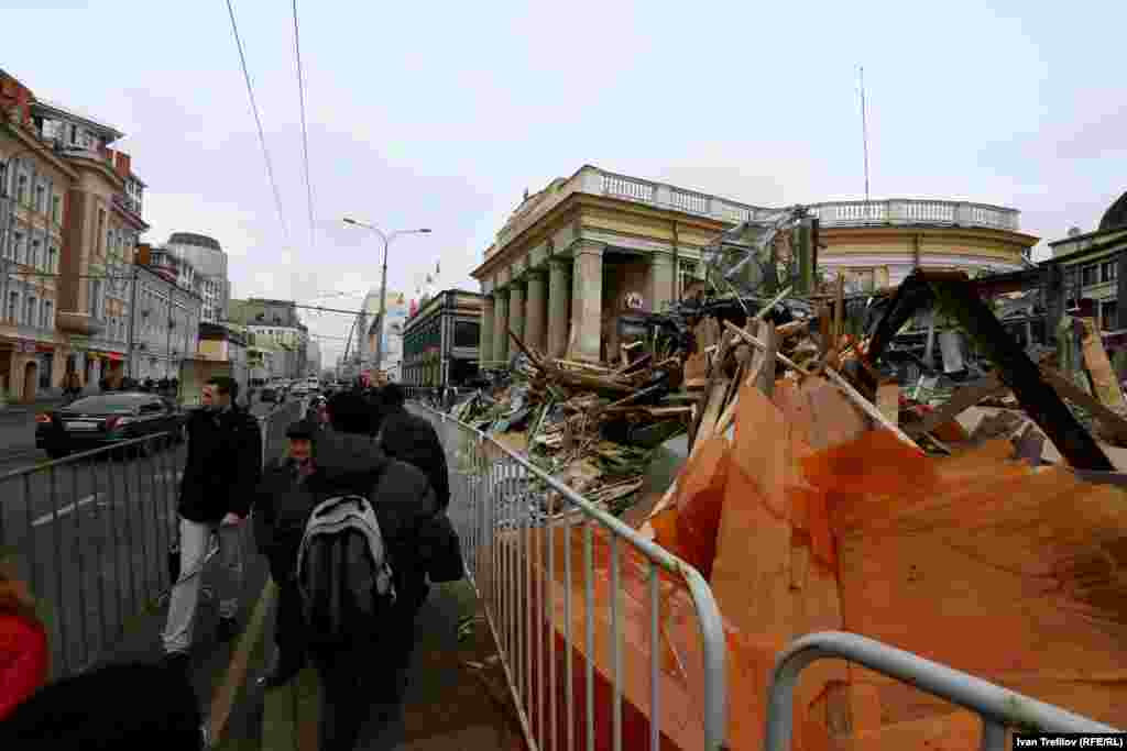 В ночь на вторник, 9 февраля, московские власти начали принудительный демонтаж торговых павильонов. Всего было снесено около 100 объектов у станций метро. Свои действия правительство столицы объяснило тем, что они являются "самовольными строениями", "угрожающими безопасности жителей города".