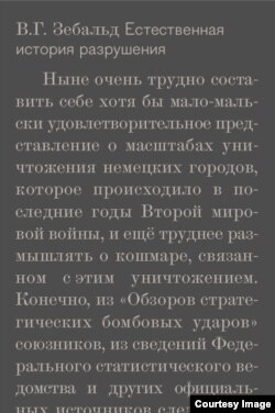В. Г. Зебальд. "Естественная история разрушения" / Перевод Н. Федоровой. – М.: Новое издательство, 2015.