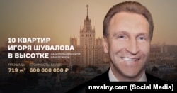 Игорь Шувалов не раз становился героем публикаций ФБК. Фонд писал и о зарубежной недвижимости семьи вице-премьера, и о его автомобиле Rolls-Royce стоимостью 40 миллионов рублей. Последние громкие расследования были посвящены тому, что управляющий активами Шувалова Сергей Котляренко скупал соседние квартиры на 14-м этаже высотного здания на Котельнической набережной. Позже Алексей Навальный опубликовал на своем сайте уведомление о проведении собрания собственников квартир этого дома. Один из пунктов повестки дня звучит так: "О передаче помещений общего пользования (части вестибюля) в собственность владельцу квартиры №225".