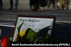 Жители Киева несут цветы к тому месту, где в среду утром был взорван автомобиль, в котором находился журналист Павел Шеремет.