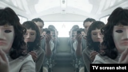 Сергей Медведев: Она довольно лобовая в той серии, где они крутят педали и получают 15 миллионов бонусов. Это тоже такой утопический мир будущего, где люди проводят весь день, сидя на велотренажерах за просмотром рекламных роликов и порнографии. Они не могут отключить рекламу и порнографию - теряют очки. То есть они так зарабатывают очки, на которые потом покупают пищу и смотрят телевидение.