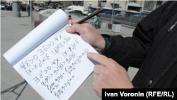Алексей открывает тетрадь, берет маркер и выводит формулу, втрое превышающую ту, с которой он обратился к прохожим 26 марта.
