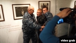 В человеке с видео я сразу узнал Александр Петрунько - члена SERB. Наиболее известный как человек с банкой мочи на выставке Джок Стерджес. Так же в сети можно найти множество видео с его провокациями, нападениями и тд.