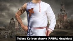 Сувенирный шарф – это еще цветочки. Сеть "Крошка-картошка" предлагает "Клубенек Победы", а в супермаркетах покупателей встречают украшенные георгиевскими лентами колбасы и патриотичные консервы из кальмаров.